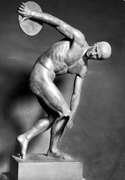 Another set of studies, published recently in Science, demonstrates more rigorously the causal relationship between cognitive style and belief in God. In the first experiment, Will Gervais and Ara Norenzayan of the University of British Columbia had Canadian undergrads take the CRT and three measures of religiosity. Analytical thinking (number of correct CRT answers) was correlated with low scores on all three religiosity measures. In the second experiment they manipulated analytical thinking by showing some subjects a picture of Rodin’s sculpture The Thinker for 30 seconds, and showed other subjects Discobolus, that iconic sculpture of the Greek dude throwing a discus. Thinker-people then gave a lower rating of their belief in God than Disco-people (41 versus 62 on a 100-point scale).